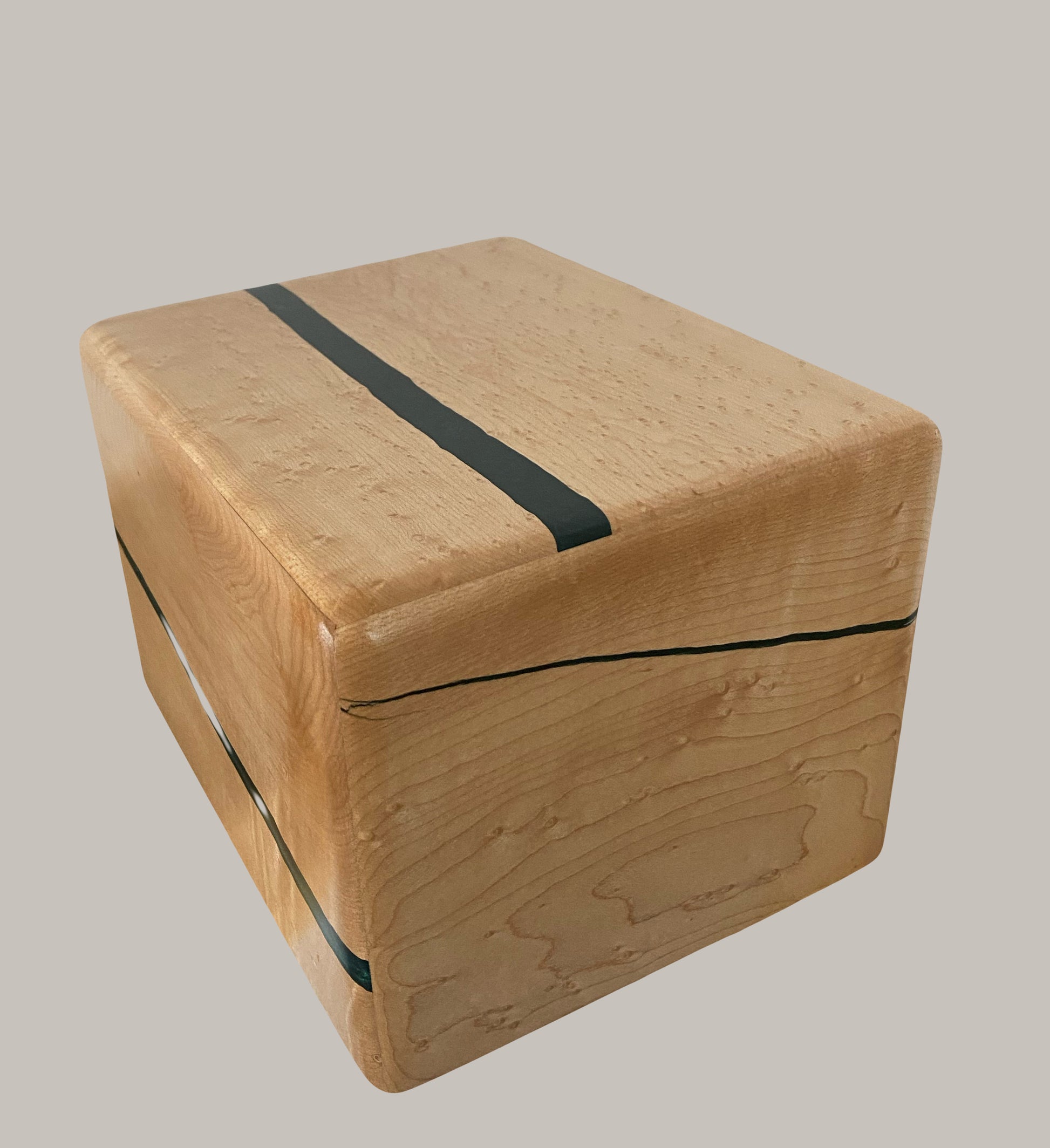 Minimalist Cremation Urn-Birdseye maple, green epoxy, imperfect wood, for Adult Human Ashes, up to 185 pounds